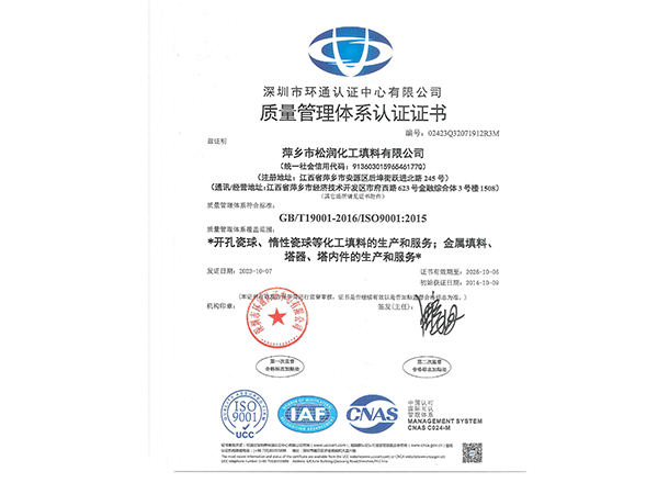 萍鄉(xiāng)市松潤化工填料有限公司位于江西省萍鄉(xiāng)市國家經(jīng)濟開發(fā)區(qū)西區(qū),是專業(yè)生產、經(jīng)營陶瓷、聚丙烯、金屬填料、塔內件、水處理濾板、濾管、濾料、瓷球、分子篩、催化劑、活性炭、蜂窩陶瓷、瓷質耐磨托輥等系列產品的民營企業(yè)。所有產品由國家非金屬材料和設備質量監(jiān)測中心監(jiān)測檢驗認證。公司現(xiàn)有員工280人,其中有高、中級職稱技術人員36人。工藝先進,技術力量雄厚,產品質量可靠,配...